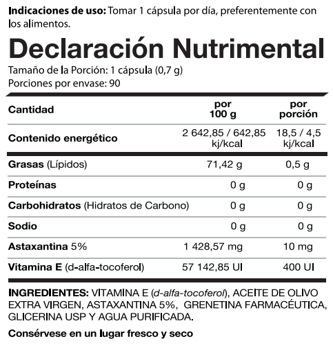 Sinergia antioxidante de Astaxantina y Vit E natural