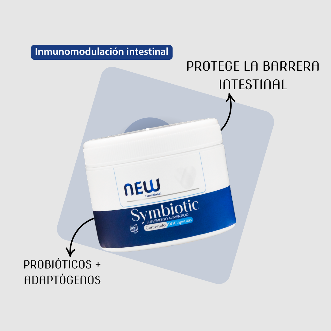 SYMBIOTIC es una fórmula diseñada para intervenir el eje intestino–inmunidad desde un enfoque estructural: microbiota, mucosa y modulación inflamatoria de